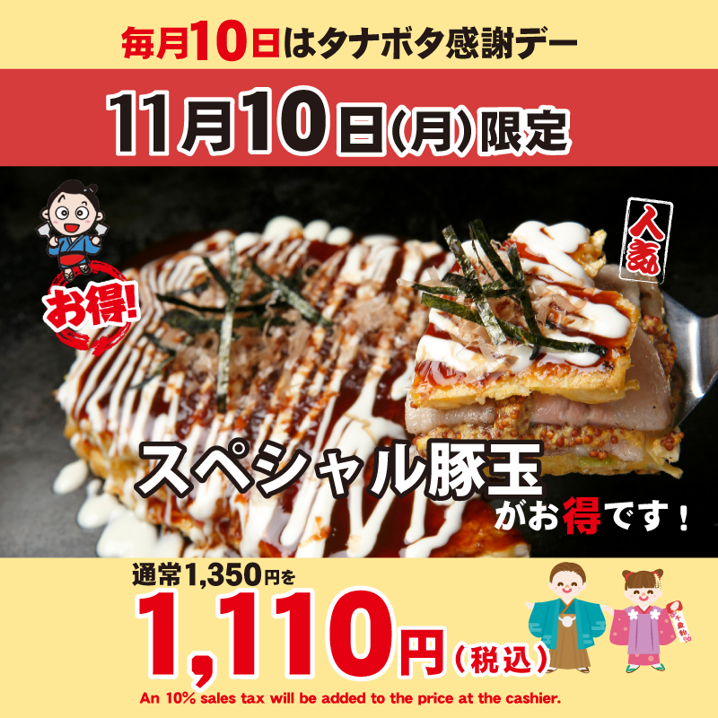 11月10日(月)は毎月何かがお得のタナボタ感謝デー!